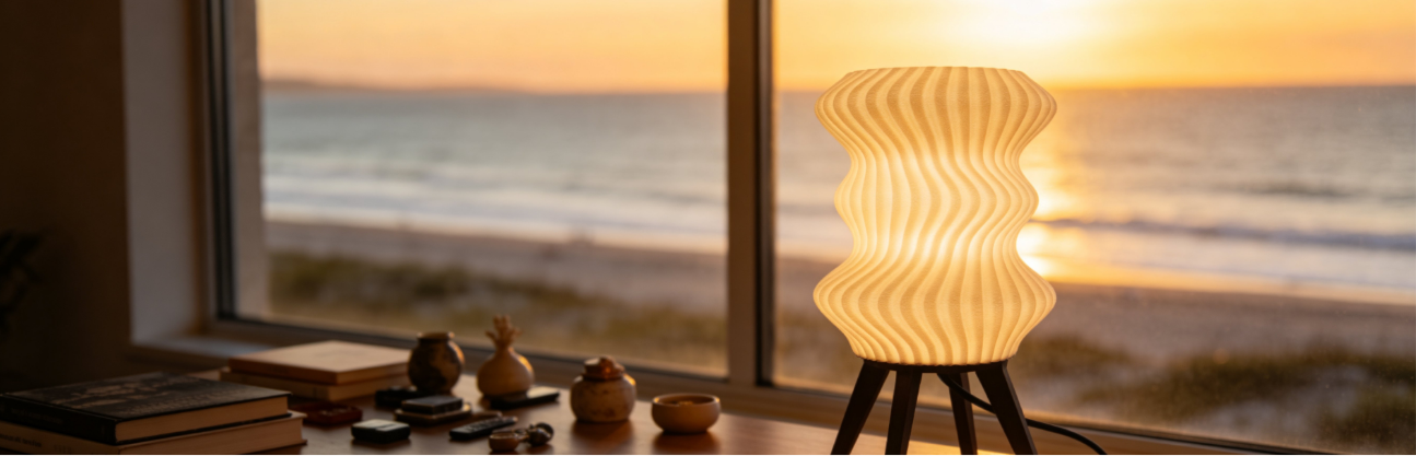 “A calm ambient light inspired by the gentle waves of Okinawa, inviting moments of rest and quiet reflection.”